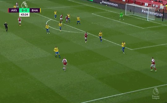 49'钱伯斯右侧横传,尼古拉·佩佩得球后破门,阿森纳1比0布莱顿!