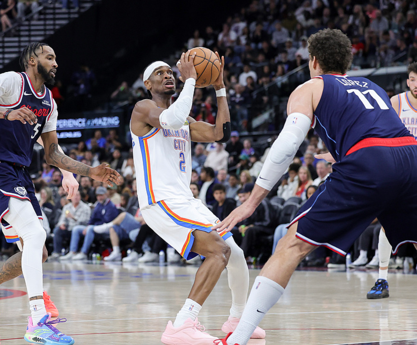 63胜16负的雷霆客场挑战41胜38负的快船,两队都是背靠背作战,雷霆方面主力俱在,快船方面加兰、比尔、尼德豪泽、杰克逊缺阵,雷霆优势很大,全场压制快船,一度领先25分,最终雷霆128-110大胜快船。亚历山大17中9(三分6中2)得到20分1板11助,切特13中10(三分4中3)得到30分14板5助2断4帽、以赛亚乔9中6(三分7中4)得到21分2板2助、杰伦12中7得到18分6板6助2断。快船方面伦纳德18中8(三分5中2)得到20分8板3助,桑德斯8中5(三分4中3)得到17分2板1助2断、大洛12中6(三分5中3)得到16分6板3助。
